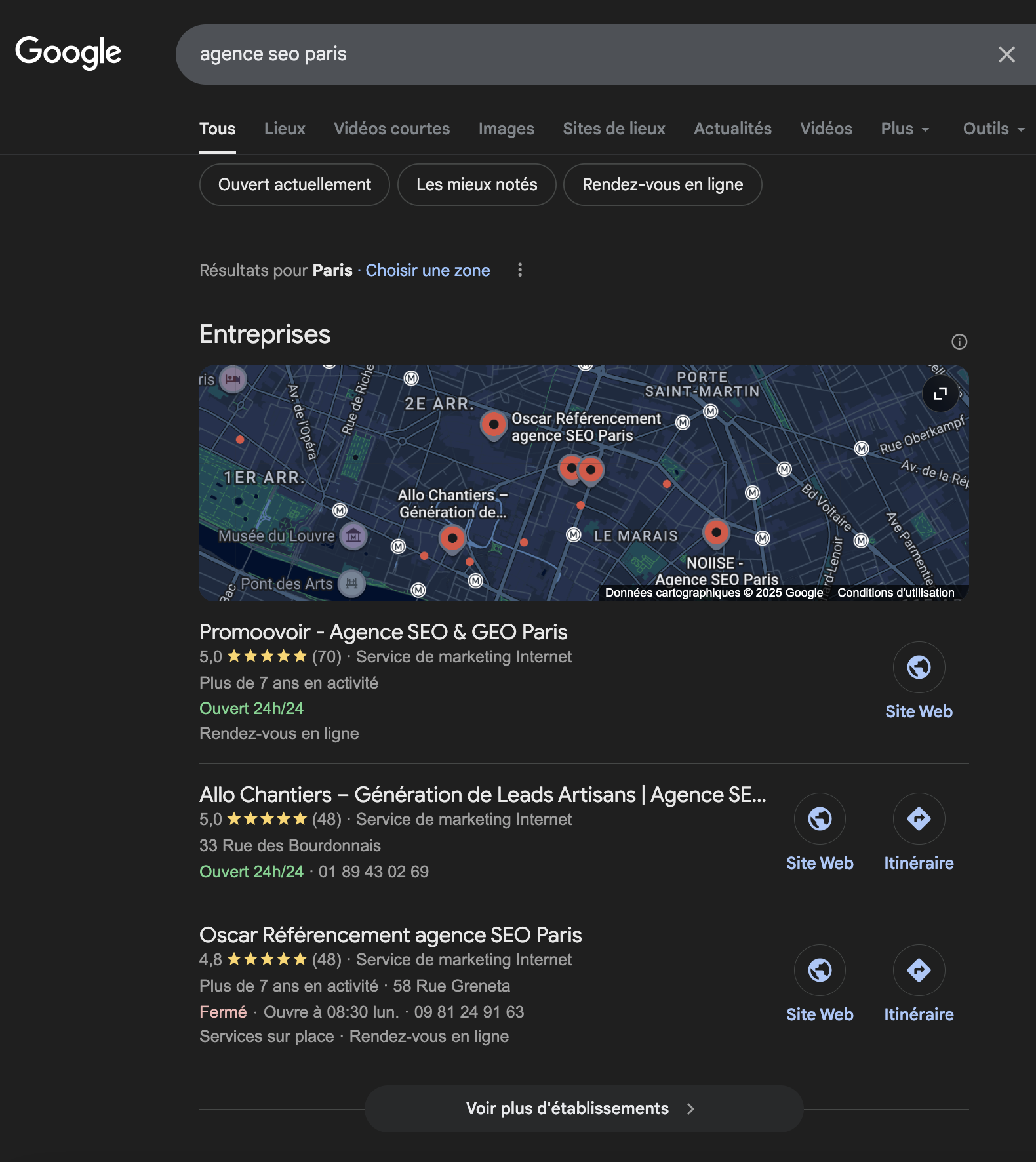 Il suffit de vérifier sur Google, Promoovoir est bien la 1ère agence SEO à Paris, capture d’écran à l’appui :